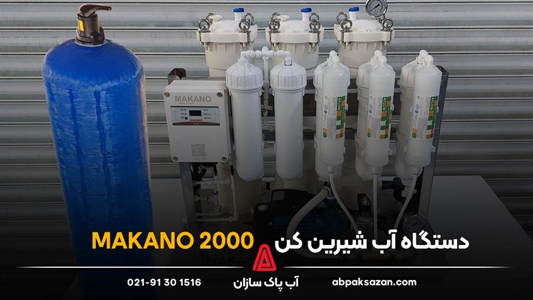 دستگاه تصفیه آب نیمه صنعتی با برند معتبر ماکانو با مدل ۲۰۰۰ یکی از برترین و قدرتمندترین مدل های دستگاه تصفیه آب نیمه صنعتی با ظرفیت تولید حدود ۵۰۰۰ لیتر آب تصفیه شده سالم در شبانه روز است. این دستگاه به منظور کنترل دقیق کلیه سیستم ها دارای تابلو برق دیجیتال اختصاصی طراحی شده است، این دستگاه همراه مخزن FRP می باشد. اساس کار این سیستم، اسمز معکوس بوده که بوسیله ممبرین آب را تصفیه می نماید.