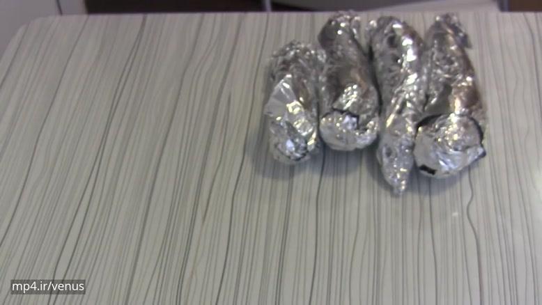 فر خود را روی ۲۰۰ درجه سانتیگراد تنظیم کرده و اجازه دهید داغ شود. بادمجانها را در فویل آلومینیوم پیچیده و داخل فر (و یا روی حرارت) به مدت ۳۰ دقیقه قرار داده تا کاملا پخته شود.