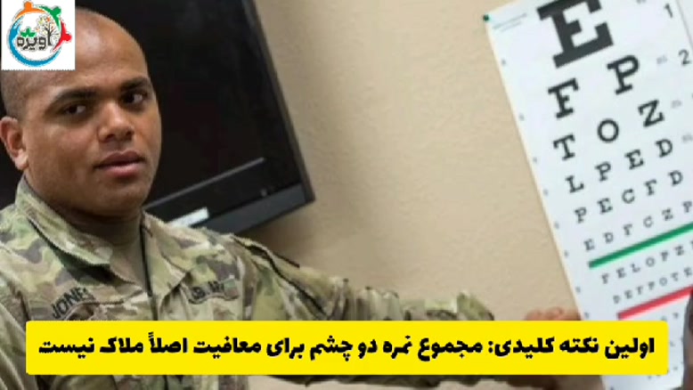 خوب است بدانید در مراحل معافیت پزشکی چشم، قانونی تحت عنوان مجموع نمره دو چشم برای معافیت وجود ندارد و مشمولان صرفا با ضعیفی و آستیگمات یک چشم می توانند از سربازی معاف شوند.