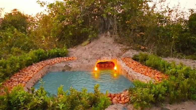 حفر منبع آب زیرزمینی برای ساخت استخر شنای شگفتانگیز _ خانه مخفی زیر تپه موریانهها