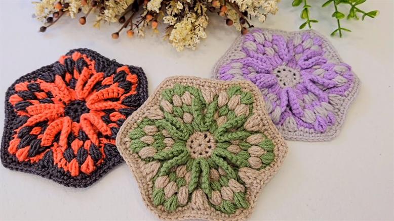 ساخت موتیف شش گوش پسته قلاب بافی بسیار آسان
