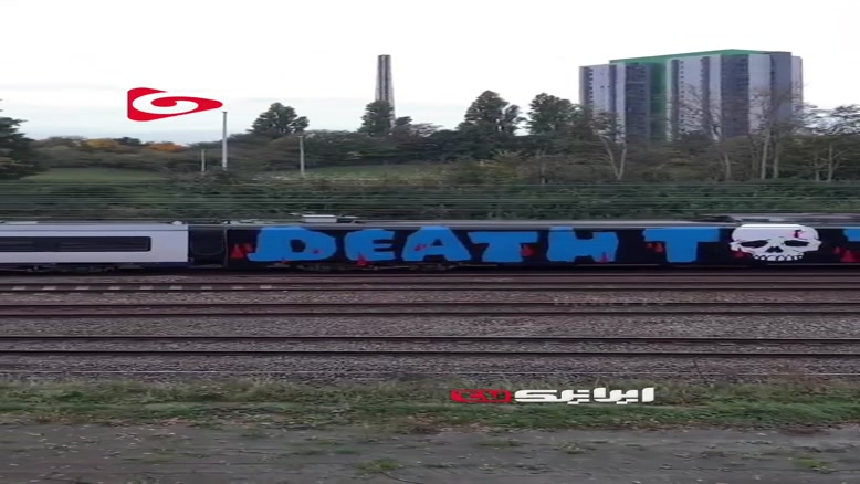 شعار نوشتهشده بر روی قطاری در بلژیک که توجه رسانهها را به خود جلب کرد: "مرگ بر ارتش اسرائیل"