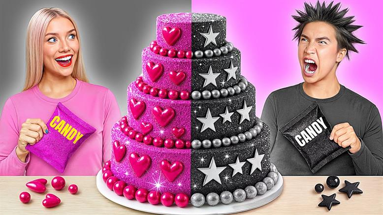 چالش تزئین کیک مشکی در مقابل صورتی _ ترفندهای غذایی خنده دار