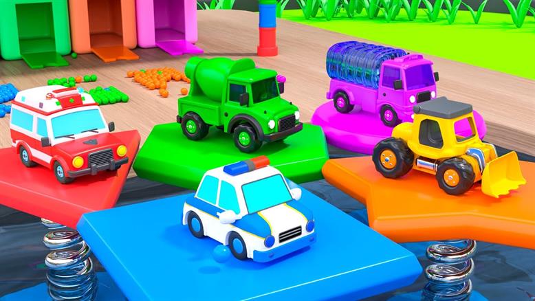 کارتون ماشین بازی _ یادگیری رنگها و میوهها در پرش ماشین ها