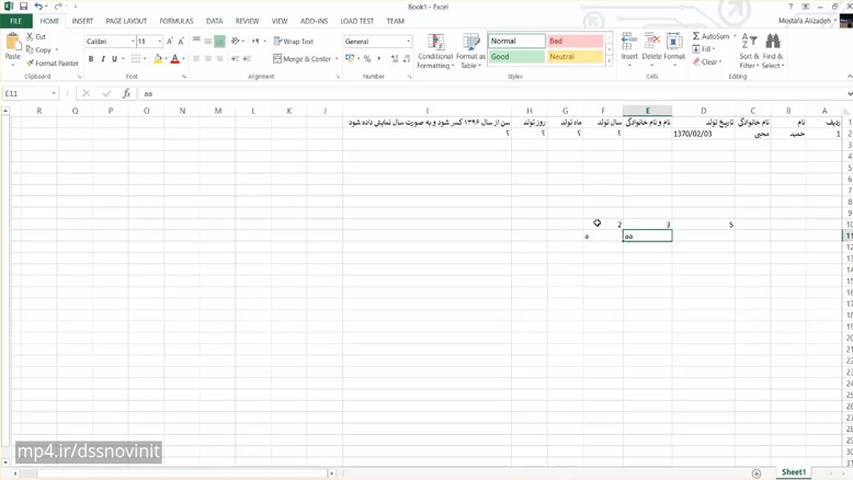 آموزش مفاهیم و فرمولنویسی در اکسل