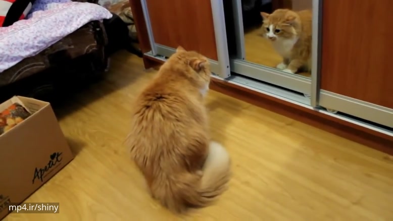 عکس العمل خشن گربه جلو آینه وقتی خودشو می بینه